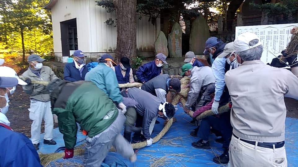 みんなで力を合わせ、今年も立派なしめ縄が出来ましたので、鎌倉八幡宮・川尻八幡神社にお越しの際は是非しめ縄にもご注目ください。