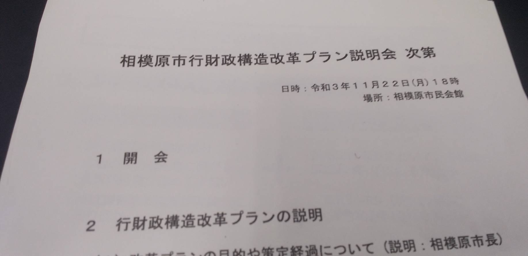 本日は仕事帰りに市主催の行財政構造改革プラン説明会に参加予定でしたが、仕事が終わらず遅刻してしまいました。
